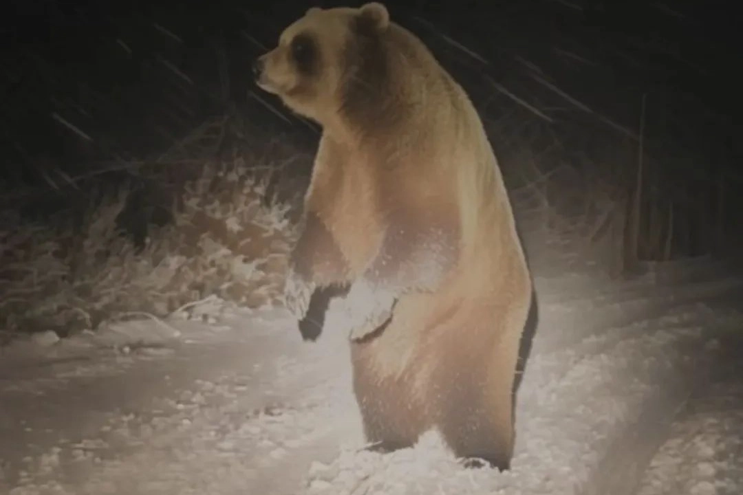 Beyaza bürünen Delmece Yaylası’nda ilerleyen araçların önüne, bir anda bir ayının çıkması herkesi şaşkına çevirdi. Keyifli başlayan “kar keyfi”, saniyeler içinde adrenalin dolu anlara dönüştü.