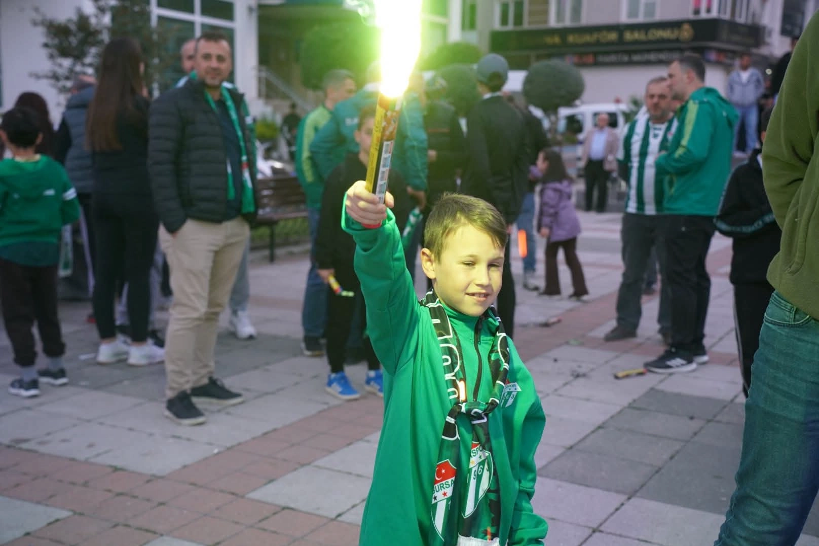 Havai fişek ve meşaleler ile Yeşil Beyaz renklere bürünen Cumhuriyet meydanı Bursaspor şarkıları ile coşarken, Bursaspor'lu taraftarlar kortej yürüyüşüde gerçekleştirdi.