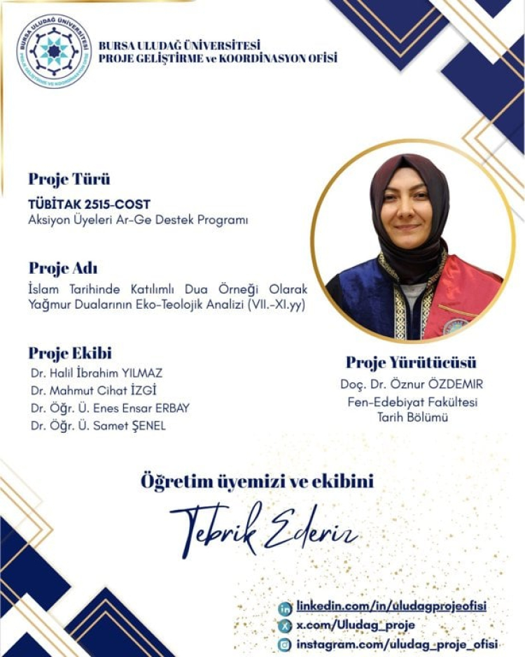 Bursa Uludağ Üniversitesi bünyesinde yürütülecek çalışma, 7. ve 11. yüzyıllar arasındaki yağmur dualarını çevre ve inanç ilişkisi çerçevesinde inceleyecek.