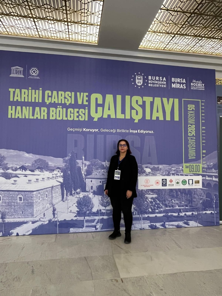 Uzman Sanat Tarihçimiz Gizem Yumru, Bursa Büyükşehir Belediyesi tarafından düzenlenen "Tarihi Çarşı ve Hanlar Bölgesi Çalıştayı"na katıldı.