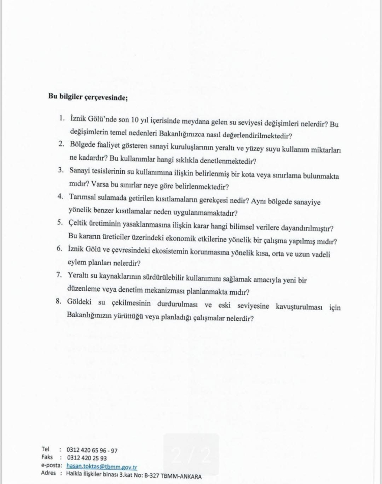 Milletvekilimiz Hasan Toktaş’ın önergesinde şu kritik sorular yer almaktadır: