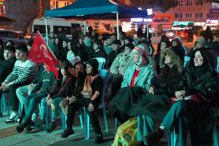 Bursa Orhangazi'de Milli heyecan Orhangazi Cumhuriyet meydanında kurulu dev ekrandan izlendi.