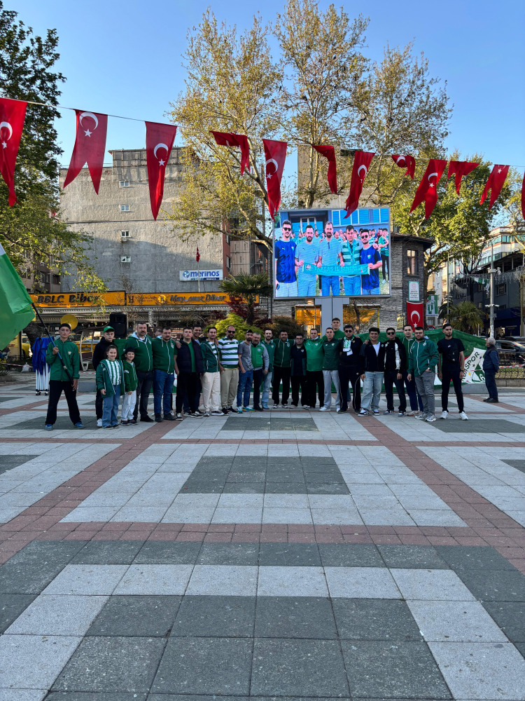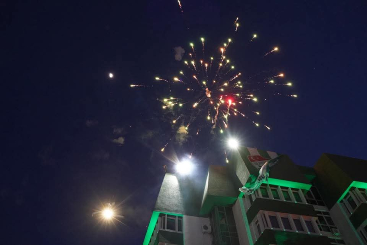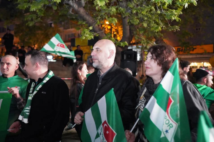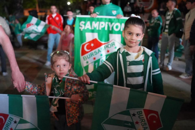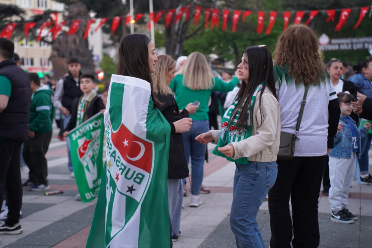 Havai fişek ve meşaleler ile Yeşil Beyaz renklere bürünen Cumhuriyet meydanı Bursaspor şarkıları ile coşarken, Bursaspor'lu taraftarlar kortej yürüyüşüde gerçekleştirdi.