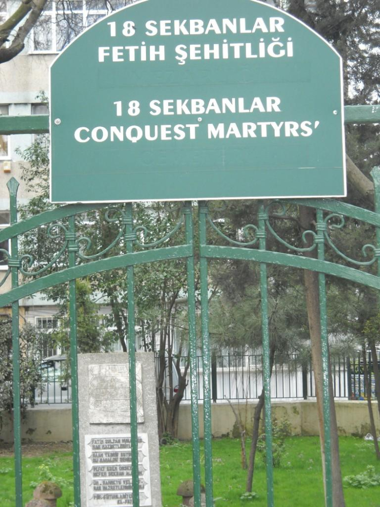 Kabristanda, 1453 yılında İstanbul’un fethine katılıp bu sırada şehit düşen on sekiz mutlu asker (Ni’me’l-Ceyş) yatmaktadır.